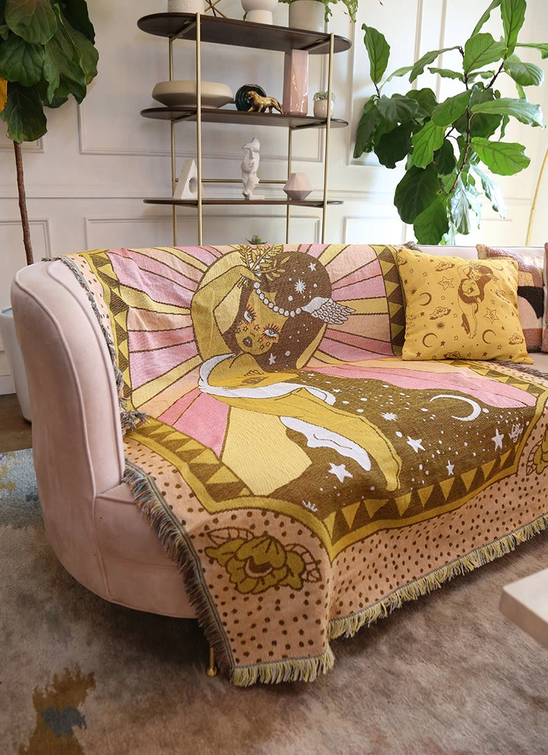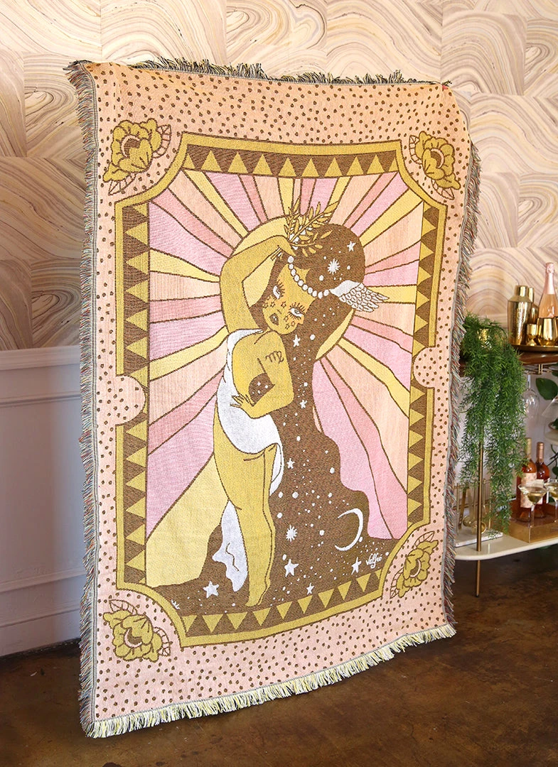 This large woven blanket features original Valfré Virgo artwork. Drape it across your bed/couch, hang it in your living space, or bring it on a picnic.
