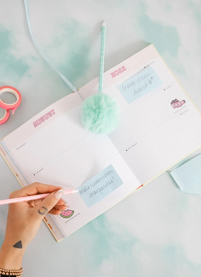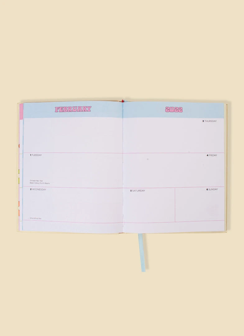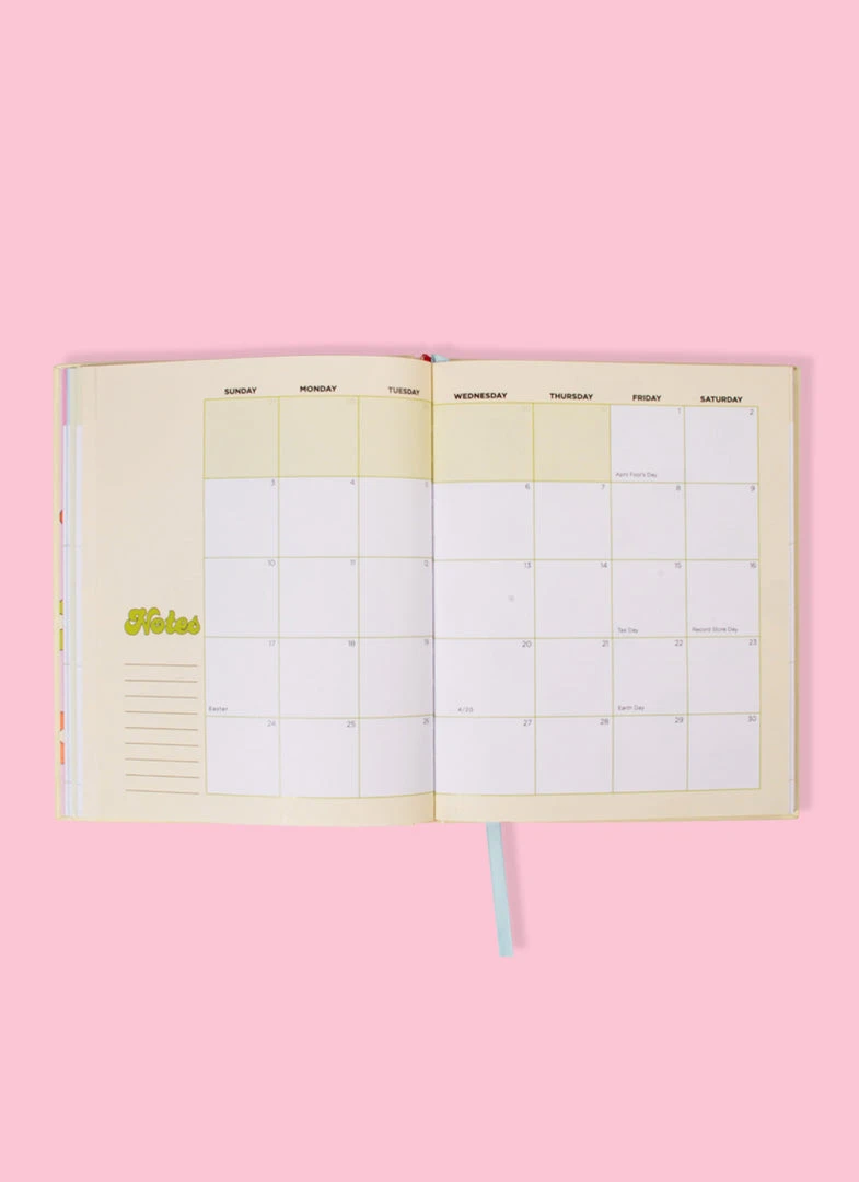 This hard cover, colorful planner includes original artwork by Valfré for each month of the year, 5 pages of stickers, a monthly calendar, a weekly calendar, pages for notes, and witty artwork for key dates throughout.