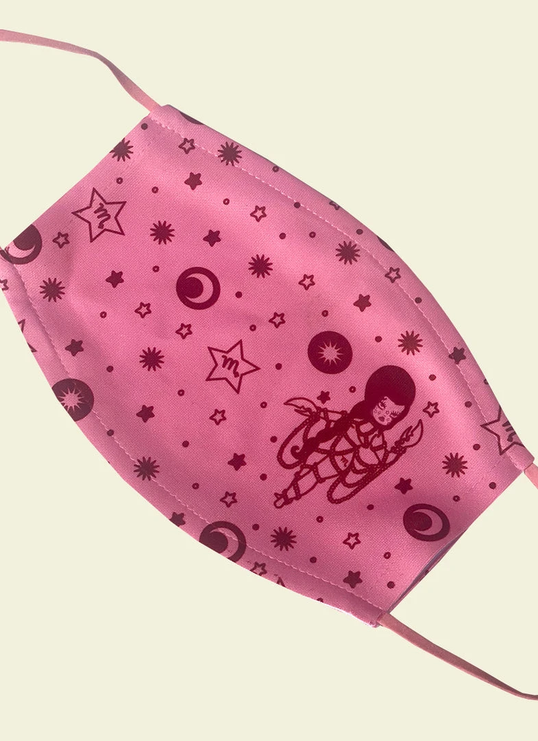 This soft face mask features original Valfré Zodiac artwork. Made of stretchy polyester material and features adjustable straps. One size fits most.