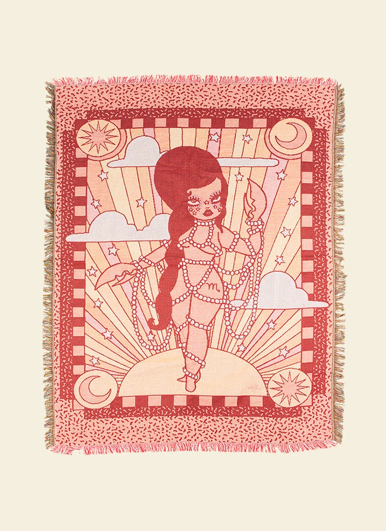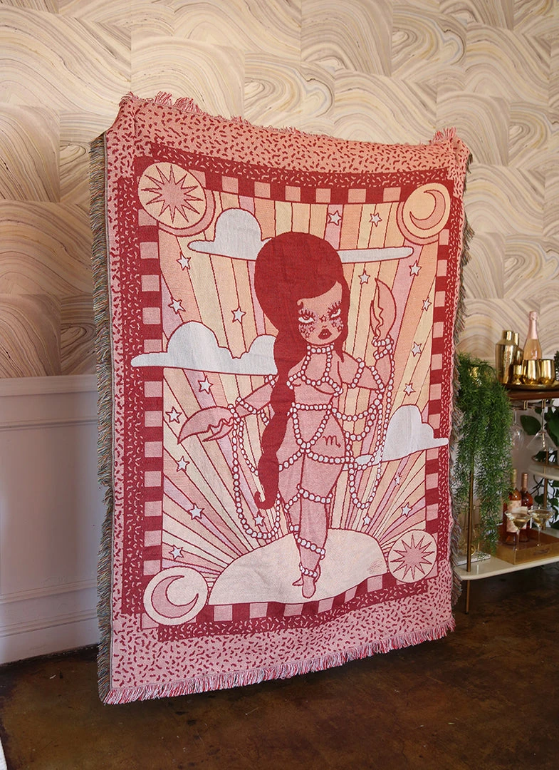 This large woven blanket features original Valfré Scorpio artwork. Drape it across your bed/couch, hang it in your living space, or bring it on a picnic.