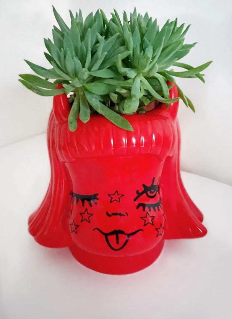 This red ceramic planter features Lucy’s devilish shape. Put your favorite plant, flowers, art supplies, or make-up brushes inside. Each planter is unique, so colors and textures will slightly differ from piece to piece.