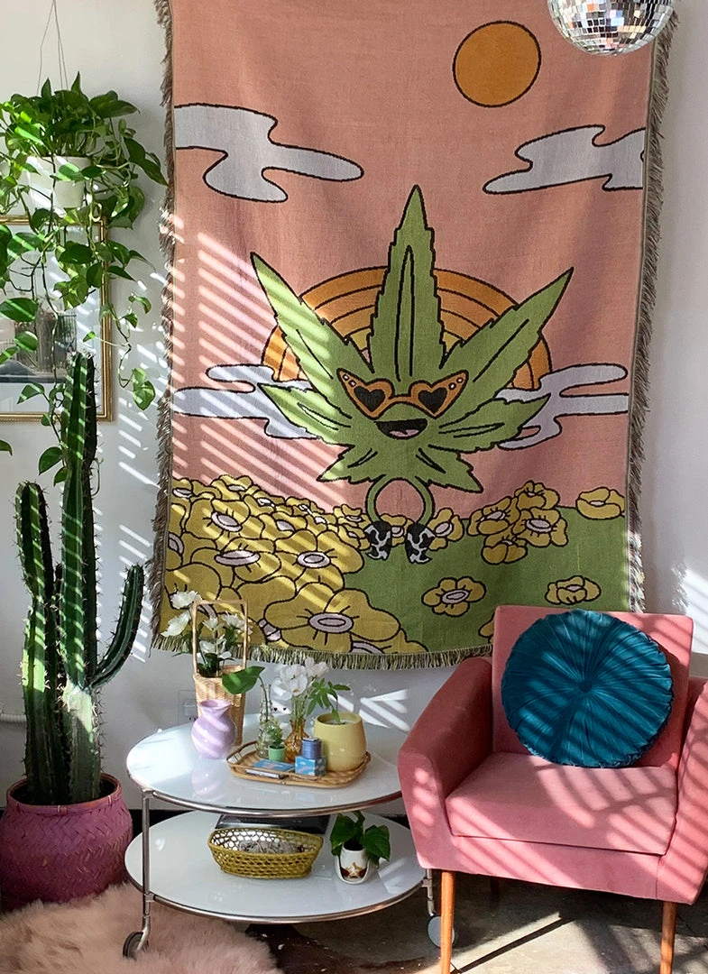 This large woven blanket features original Valfré artwork. Drape it across your bed/couch, hang it in your living space, or bring it to the beach.