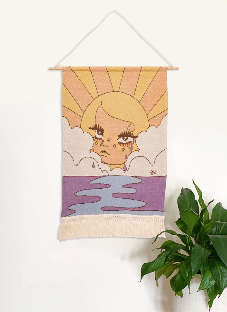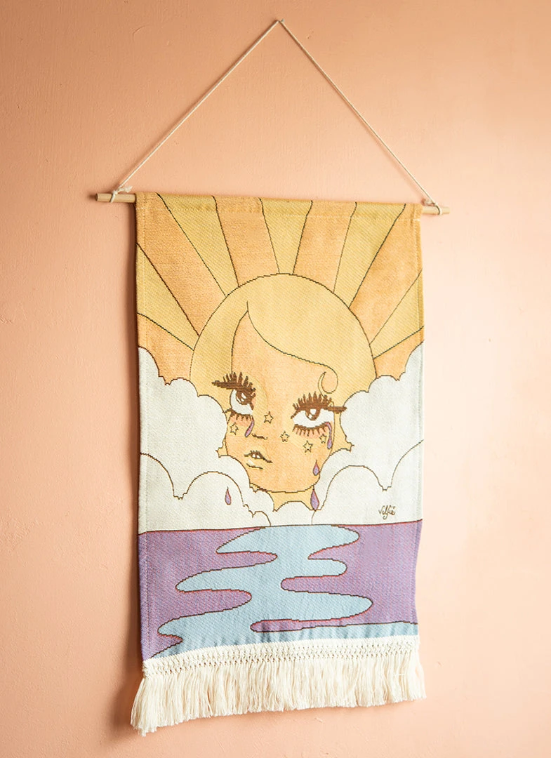 This woven tapestry features original Valfré artwork, a wooden rod to easily hang, and fringe at the bottom.