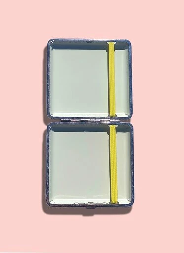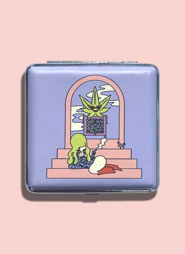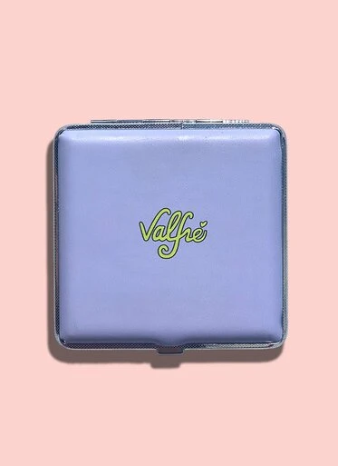 This purple case features original Valfré artwork, and included a yellow band to fit smoking supplies perfectly. 4″ by 4″ Features original Valfré artwork Features a metal closure and black band inside